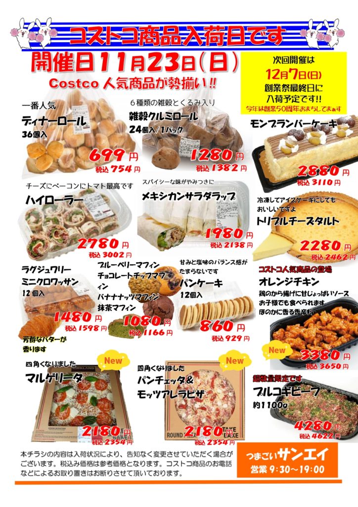 日曜セール開催致します。コストコ商品も入荷します!
