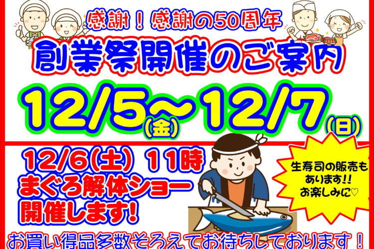 12月5日(金)~7日(日)50周年創業祭開催!!