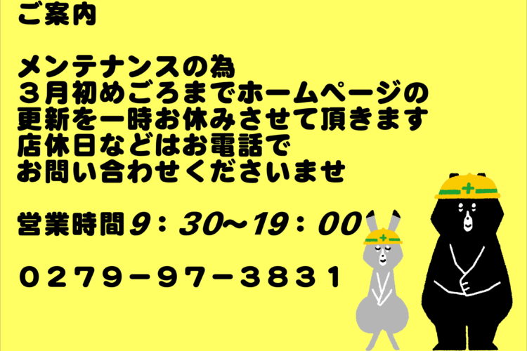 ホームページ 一時更新お休みのご案内