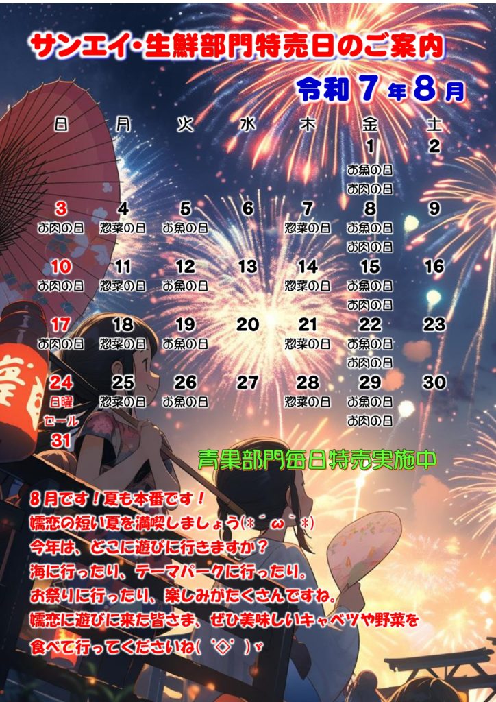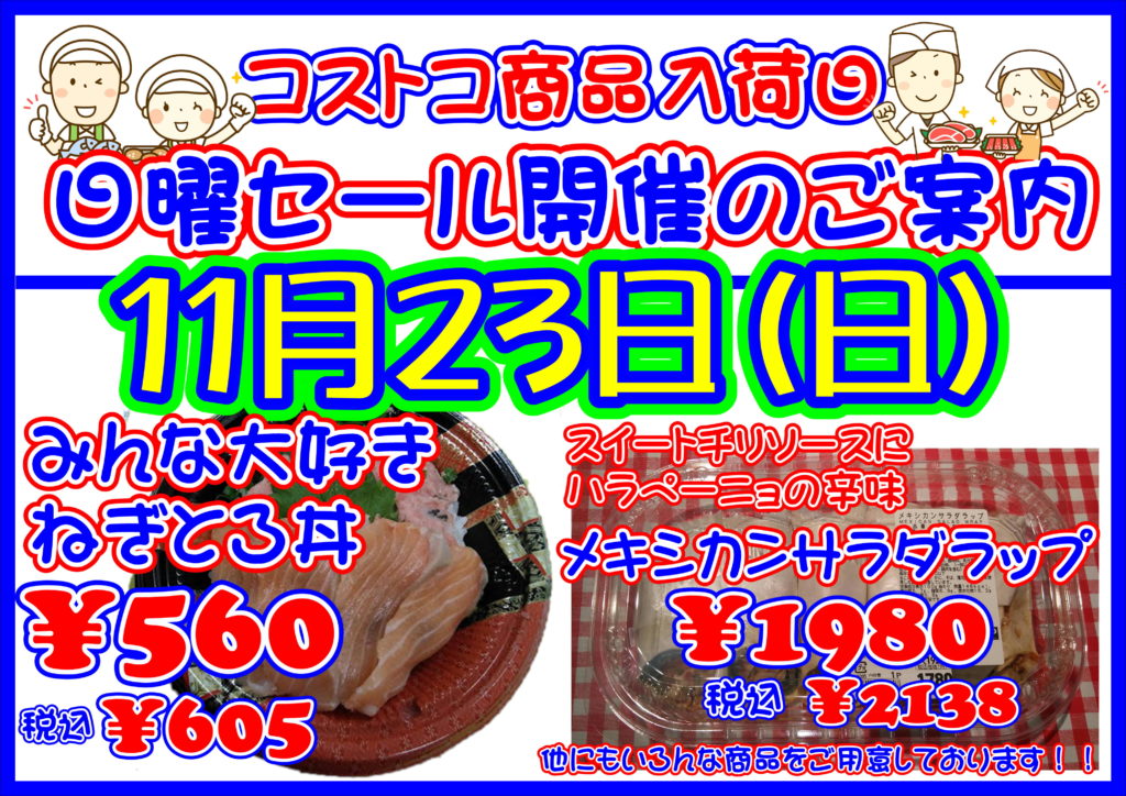 チラシのご案内 月間特売 10月月間スケジュールのご案内 8月月間スケジュール&特売のご案内 チラシ 12月5日(金)~7日(日)50周年創業祭開催!! 日曜セール開催致します。コストコ商品も入荷します!